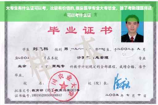 临床医学专业大专毕业,一般都是考助理医师证,然后做相关的工作后在考医师资格证;