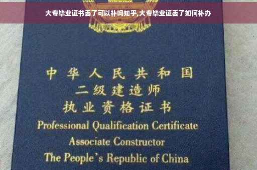 到此,以上就是小编对于大专毕业证书丢了可以补吗知乎的问题就介绍到这了,希望介绍关于大专毕业证书丢了可以补吗知乎的5点解答对大家有用。