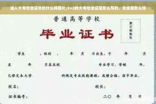 3+2的大专毕业证是成人高考大专毕业证,含金量不如全日制。