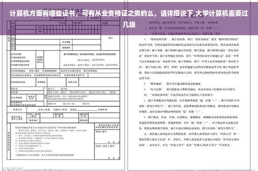 计算机在中国目前有三种从业资格证书,一类是操作证书,由劳动部门颁发,可通过各种社会培训机构参训后报名参加考试,如一级、二级和普通操作证书;二类是专业技术证书,由工信部组织考试,各省颁发证书,直接网上报名参加考试,分初级、中级、高级,如程序员、系统分析师、信息系统项目管理师、构架师等证书;三类是由专业信息公司组织专门的实用技术考试,颁发专业从业资格证书,如西门子交换机维护工程师、ORACLE数据库维护工程师、华为路由器售后服务工程师等证书。