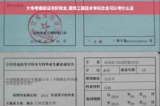 其它的有: 1(省级注册类)施工员,资料员,质量员,材料员,机械员,监理员,造价员; 2(国家注册执业类)注册监理工程师,造价师,咨询师,建造师(一级,二级),结构师(一级,二级)建筑师(一级,二级); 3(评审考试类)技术员,助理工程师,工程师,高级工程师,教授级高级工程师(教高)只要是大专,你就可以参加好多职业资格证书考试了,大专是大多数职业资格证书考试的入门条件!