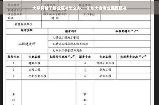 大家好,关于一年制大专专业课程证书的问题,于是小编就整理了5个相关介绍一年制大专专业课程证书的解答,让我们一起看看吧。
