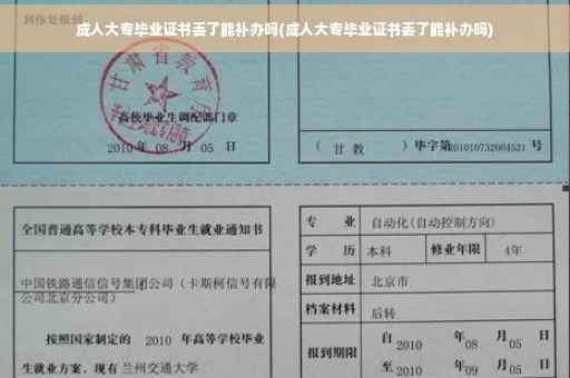 到此,以上就是小编对于成人大专毕业证书丢了能补办吗的问题就介绍到这了,希望介绍关于成人大专毕业证书丢了能补办吗的4点解答对大家有用。