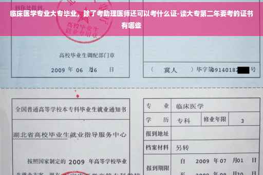 临床医学专业大专毕业,一般都是考助理医师证,然后做相关的工作后在考医师资格证; 据《中华人民共和国执业医师法》及有关规定具有下列条件之一的,可以参加医师资格考试: (一)具有高等学校医学专业本科以上学历,在执业医师指导下,在医疗、预防、保健机构中试用期满一年的; (二)取得执业助理医师执业证书后,具有高等学校医学专科学历,在医疗、预防、保健机构中工作满二年;具有中等专业学校医学专业学历,在医疗、预防、保健机构中工作满五年的。 (三)具有高等学校医学专科学历或者中等专业学校医学专业学历,在执业医师指导下,在医疗、预防、保健机构中试用期满一年的,可以参加执业助理医师资格考试。 以师承方式学习传统医学满三年或者经多年实践医术确有专长的,经县级以上人民政府卫生行政部门确定的传统医学专业组织或者医疗、预防、保健机构考核合格并推荐,可以参加执业医师资格或者执业助理医师资格考试。考试的内容和办法由国务院卫生行政部门另行制定。