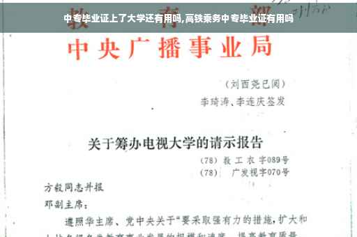 高铁乘务中专毕业证一般设有用,现在中国铁路发展很快,技术含量越来越高,所以铁路系统对职工的素质和学历要求越来越高,特别是高铁乘务必须是大专以上学历,各铁路职业技术学院铁路机车乘务专业学习三年,成绩合格才有机会到高铁乘务,中专生铁路系统一般不接受。