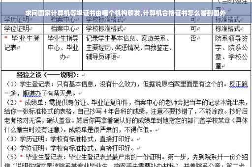 国家计算机等级证书由教育部考试中心颁发考试合格证书。