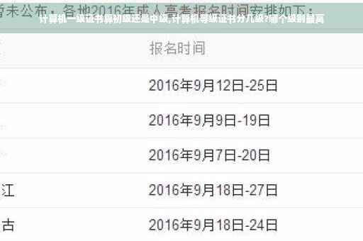 计算机等级考试共设四个级别,分别是一级、二级、三级、四级。一级考核微型计算机基础知识;二级考核使用一种高级计算机语言编写程序;三级考核PC机硬件组成和Windows操作系统的基础知识;四级考核计算机专业基本知识以及计算机应用项目的分析设计、组织实施的基本技能。