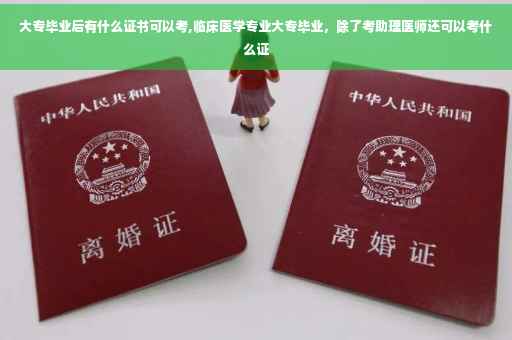 临床医学专业大专毕业,一般都是考助理医师证,然后做相关的工作后在考医师资格证; 据《中华人民共和国执业医师法》及有关规定具有下列条件之一的,可以参加医师资格考试: (一)具有高等学校医学专业本科以上学历,在执业医师指导下,在医疗、预防、保健机构中试用期满一年的; (二)取得执业助理医师执业证书后,具有高等学校医学专科学历,在医疗、预防、保健机构中工作满二年;具有中等专业学校医学专业学历,在医疗、预防、保健机构中工作满五年的。 (三)具有高等学校医学专科学历或者中等专业学校医学专业学历,在执业医师指导下,在医疗、预防、保健机构中试用期满一年的,可以参加执业助理医师资格考试。 以师承方式学习传统医学满三年或者经多年实践医术确有专长的,经县级以上人民政府卫生行政部门确定的传统医学专业组织或者医疗、预防、保健机构考核合格并推荐,可以参加执业医师资格或者执业助理医师资格考试。考试的内容和办法由国务院卫生行政部门另行制定。