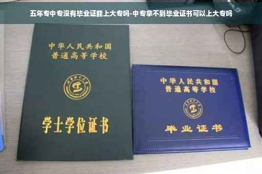 五年中专没有毕业证,只要自己努力,还是可以上大专的。全日制大专要参加高考,高考的年龄限制现在放得很宽,一般都没有问题。业余性质的大专有的可以免试入学,比如自学考试和有的网络大专。还有一些业余性质的大专要先参加成人高考,录取以后再入学学习。但是我在这里要说一下,五年,中专没有毕业,说明学习不够上心。