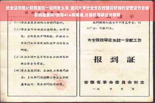 大学毕业生在校期间获得的荣誉证书会,例如4\6级英语,计算机等级证书等等.这些东东是国家认证的,当然会有记录的,当然不是把证书放在里面,放不下,但是里面有你的记录:如XX年,XX以XX分通过了国家英语四级等.