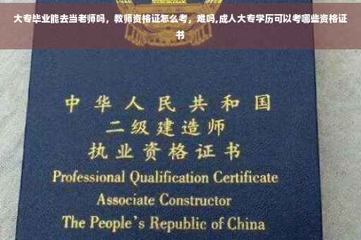 建造师证,药师证,教师证,造价师证,人力资源师,现在你想考的基本条件符合了,成人大专只要学信网上查询真实有效,和全日制的大专是一样国家承认的!
