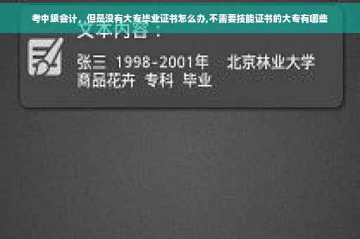 如果你参加了中级会计考试,但没有大专毕业证书,你可以考虑以下几个方案: