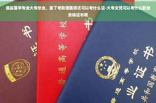临床医学专业大专毕业,一般都是考助理医师证,然后做相关的工作后在考医师资格证; 据《中华人民共和国执业医师法》及有关规定具有下列条件之一的,可以参加医师资格考试: (一)具有高等学校医学专业本科以上学历,在执业医师指导下,在医疗、预防、保健机构中试用期满一年的; (二)取得执业助理医师执业证书后,具有高等学校医学专科学历,在医疗、预防、保健机构中工作满二年;具有中等专业学校医学专业学历,在医疗、预防、保健机构中工作满五年的。 (三)具有高等学校医学专科学历或者中等专业学校医学专业学历,在执业医师指导下,在医疗、预防、保健机构中试用期满一年的,可以参加执业助理医师资格考试。 以师承方式学习传统医学满三年或者经多年实践医术确有专长的,经县级以上人民政府卫生行政部门确定的传统医学专业组织或者医疗、预防、保健机构考核合格并推荐,可以参加执业医师资格或者执业助理医师资格考试。考试的内容和办法由国务院卫生行政部门另行制定。
