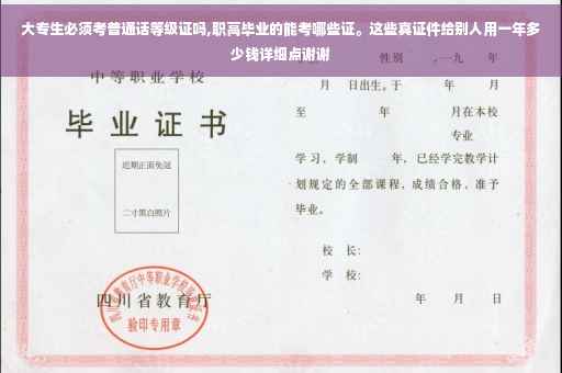 普通话证书只有播音主持、师范类等特殊专业才是必须考的,其他专业不做要求。 普通话水平测试等级证书是证明应试人普通话水平有效凭证,证书由国家语言文字工作委员会统一印制。普通话一级乙等以下成绩的证书由省(直辖市)级语言文字工作委员会加盖印章后颁发,普通话一级甲等的证书须经国家普通话水平测试中心审核并加盖国家普通话水平测试中心印章后方为有效。有效的普通话水平测试等级证书全国通用。根据国家及有关部委的要求,现阶段各类人员的普通话水平应达到的等级标准如下:播音员、节目主持人、影视话剧演员为一级以上水平;教师和大学生为二级以上水平;公务员和社会公共服务行业从业人员为三级以上水平。