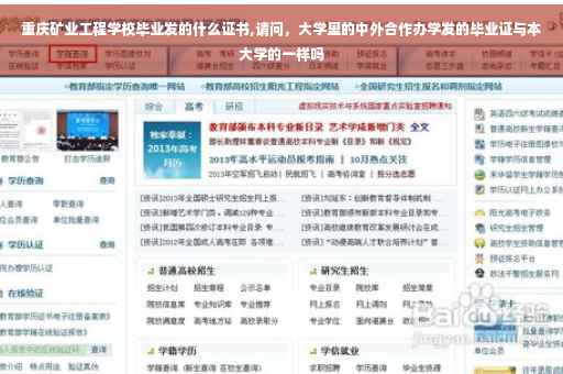 不能一概而论,有的是一样的,有的不一样的。如果是某个高校与某外国大学联合设立的独立学院那么毕业证跟本大学的毕业证不一样,比方说北京师范大学与香港浸会大学的珠海联合学院毕业证就不一样,如果不是独立学院应该是一样的,如广西大学的中外合作专业,东北财经大学的中外合作专业。