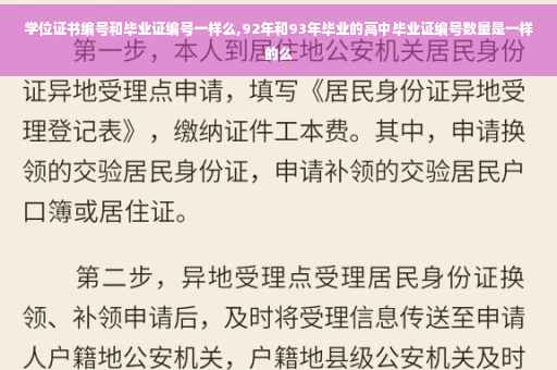 不一样的。 1)毕(结)业证书编号即为注册号,使用阿拉伯数字,统一规范为18位。 毕业证的顺序编排:前5位为学校或其他教育机构的国标代码;第6位为办学类型代码;第7至10位为年份;第11至12位为培养层次代码;第13位至17位为学校对毕(结)业证书编排的序号。2002年学历证书编号扩充至18位(但当年有部分高校仍使用17位)。