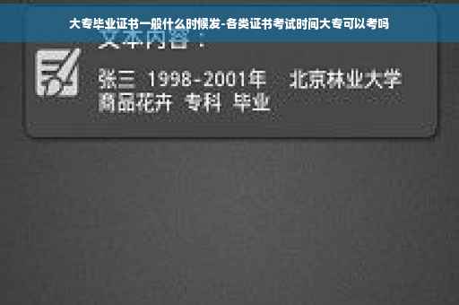 大专毕业证一般是七月份统一发放。不过也要分为具体情况。如果是全日制大专的话,一般是七月份统一到校领取,具体院校有一定差别,不过一般在七八月份毕业时间领取毕业证。