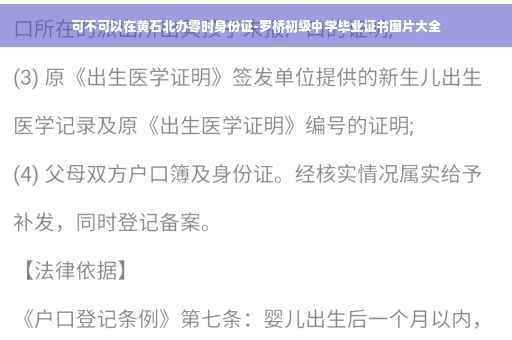 2,收费标准:居民身份证异地受理工本费严格执行《国家发展改革委、财政部关于居民身份证收费标准及有关问题的通知》规定,对有效期满换领居民身份证的,收取工本费每证20元;损坏换领、丢失补领居民身份证的,收取工本费每证40元。3,发证时限:公安机关应当自公民提交《居民身份证异地受理登记表》之日起六十日内发放居民身份证;交通不便地区,办理时间可以适当延长,但延长时间不得超过三十日;有条件的地方,可以根据实际情况缩短制发证周期。4,不予受理的情形:首次申领居民身份证的;申领人提供的姓名、性别、民族、出生日期、公民身份号码、常住户口所在地住址(省、自治区、直辖市内住址变更除外)与人口系统中信息不一致难以确认身份的;申请人相貌特征发生较大变化,且居民身份证未登记指纹信息,难以确认身份的;有伪造、变造、买卖、冒领、骗领、冒用居民户口簿、居民身份证、护照、驾驶证和买卖、使用伪造的居民户口簿、居民身份证、护照、驾驶证等国家机关证件行为的;属于国家信用信息共享交换平台推送的不良信用记录人员的。对于以上情形,仍需回户籍地申请办理。5,办理地点:大冶市——大冶市公安局办证大厅、东风路派出所、东岳路派出所、金湖派出所、罗桥派出所;到此,以上就是小编对于罗桥初级中学毕业证书图片的问题就介绍到这了,希望介绍关于罗桥初级中学毕业证书图片的1点解答对大家有用。