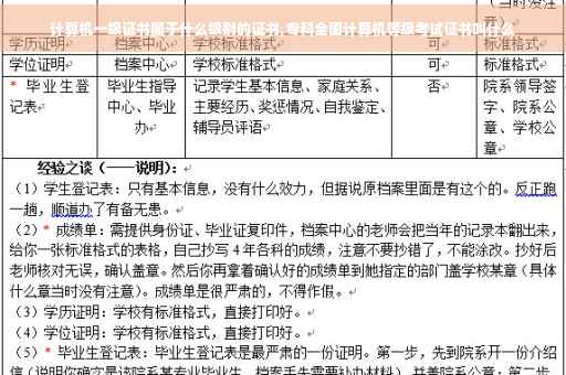 计算机一级是由国家级权威机构颁发的资格证书,通常是由国家教育部或相关行业主管部门授权的机构进行考核和颁发。这种级别的证书通常代表着持有人在计算机技术领域具备一定的基本知识和能力,可以胜任一些基础的计算机技术工作。
