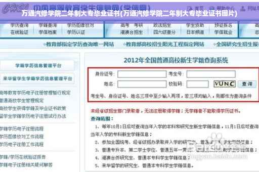 到此,以上就是小编对于万通汽修学院二年制大专毕业证书的问题就介绍到这了,希望介绍关于万通汽修学院二年制大专毕业证书的4点解答对大家有用。