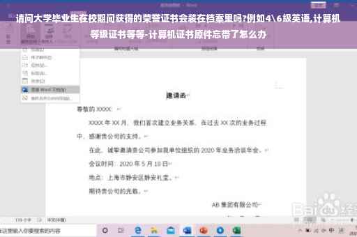 大学毕业生在校期间获得的荣誉证书会,例如4\6级英语,计算机等级证书等等.这些东东是国家认证的,当然会有记录的,当然不是把证书放在里面,放不下,但是里面有你的记录:如XX年,XX以XX分通过了国家英语四级等.