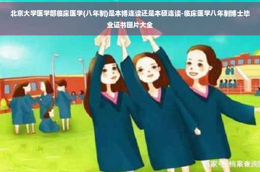 本专业学制八年,学生完成各阶段学业、考核合格,颁发本科和博士研究生毕业证书;符合学位授予条件者,授予医学学士和医学博士学位。未达到进入二级学科要求或自愿放弃二级学科学习者,将在完成本科阶段培养后分流出口,符合条件者按本科毕业(具体参阅《北京大学医学部本专科生学籍管理细则》)。