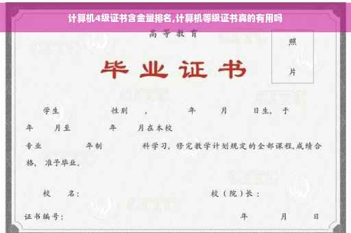 计算机等级证书四级的含金量还是比较高的。计算机等级证书的四级证书可从事的工作有:软件测试工程师、网络工程师、信息安全工程师、嵌入式系统开发工程师、数据库工程师。计算机四级考试是针对计算机的熟练以及掌握程度进行评估的一种国家型等级考试。