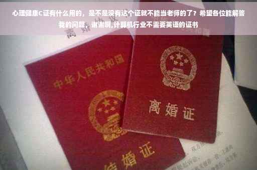 这个是作为教师或教育工作者成为心理健康教师的第一关,有了C证就可以对自己班级或所在学校的学生做心理辅导,这个证要经过培训学习,考试,面试.才能通过的.想成为老师要看个县市的招考标准的,学历证书,教师资格证,普通话等级证书,计算机证书,英语等级证书等好像是要有的,也要看情况的.如果要有心理健康C证的话,只能说你们那的招考要求高了点.