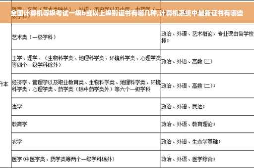 全国计算机等级考试一级b或以上级别证书有二级vb、二级c语言、二级C++、二级Java、二级WEB程序设计、二级VFP、三级PC技术、三级信息管理技术、三级数据库技术、三级网络技术等。 全国计算机等级考试(NationalComputerRankExamination,以下简称NCRE),是经原国家教育委员会(现教育部)批准,由教育部考试中心主办,面向社会,用于考查非计算机专业应试人员计算机应用知识与技能的全国性计算机水平考试体系。