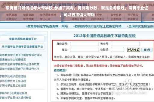 大家好,关于没有证书如何报考大专的问题,于是小编就整理了5个相关介绍没有证书如何报考大专的解答,让我们一起看看吧。