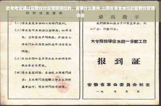 二、职称评定一是与岗位设置有关。也就是说,(1)根据岗位设置如果你定岗在管理岗位,你以后的岗位(待遇)等发展途径为:十级职员、九级职员……;(2)如果在定岗在专业技术岗位,你就沿着专业技术类的初级、中级、高级等职称发展;(3)符合条件的人员可以实行“双肩挑”。