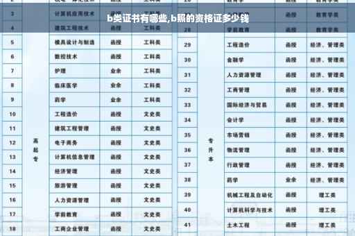 B类证书有:一(二)级建造师(项目经理)。