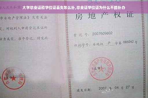 大学毕业证和学位证丢失后,只能补办毕业证明书和学位证明书,与原证书具有同等效力。