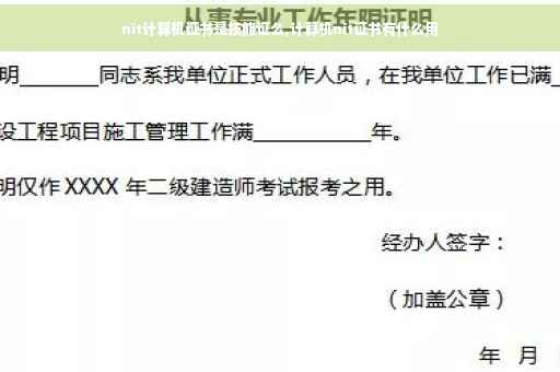 NIT是一个计算机技能证书。有不同分类。报名的多数是自考生用来代替对应科目考试的。职业证书的话建议用OSTA证书,比较权威,是人保部发的证,这个分等级的。NIT考试作为国家级的IT职业技能培训及评测体系,面向信息技术领域众多门类相关职位所需求的核心技能,提出了规范的考核标准。