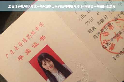 全国计算机等级考试一级b或以上级别证书有二级vb、二级c语言、二级C++、二级Java、二级WEB程序设计、二级VFP、三级PC技术、三级信息管理技术、三级数据库技术、三级网络技术等。 全国计算机等级考试(NationalComputerRankExamination,以下简称NCRE),是经原国家教育委员会(现教育部)批准,由教育部考试中心主办,面向社会,用于考查非计算机专业应试人员计算机应用知识与技能的全国性计算机水平考试体系。