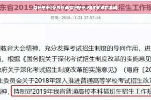 大家好,关于常州毕业证补办地点的问题,于是小编就整理了2个相关介绍常州毕业证补办地点的解答,让我们一起看看吧。
