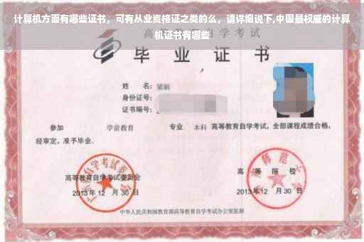 计算机在中国目前有三种从业资格证书,一类是操作证书,由劳动部门颁发,可通过各种社会培训机构参训后报名参加考试,如一级、二级和普通操作证书;二类是专业技术证书,由工信部组织考试,各省颁发证书,直接网上报名参加考试,分初级、中级、高级,如程序员、系统分析师、信息系统项目管理师、构架师等证书;三类是由专业信息公司组织专门的实用技术考试,颁发专业从业资格证书,如西门子交换机维护工程师、ORACLE数据库维护工程师、华为路由器售后服务工程师等证书。