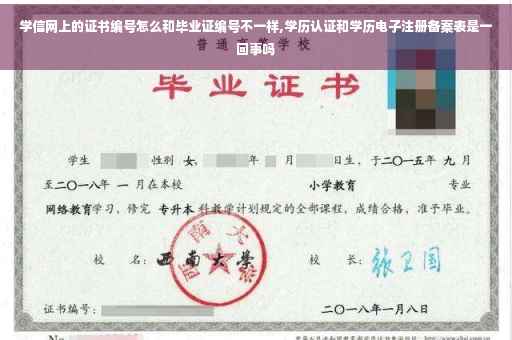 2. 这是因为学信网上的证书编号是由学信网系统自动生成的,用于在教育部门进行学历认证和查询,而毕业证编号是由学校根据一定规则生成的,用于证明个人的毕业身份。