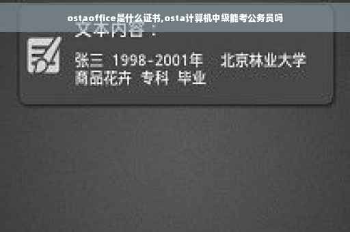 OSTA计算机中级证书是由人力资源和社会保障部职业技能鉴定中心主办的,代表的是该工种从业者的国家职业资格证书。持有OSTA计算机中级证书的你,是可以报考公务员的。实际上,每年公务员考试都有大量的计算机专业招聘需求。