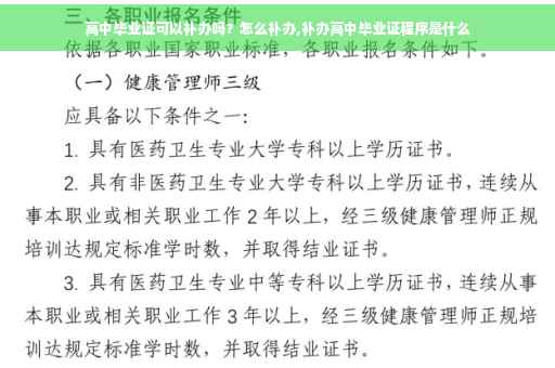 学校经过核实审查无误后给你开具一份毕业证明书后盖上公章,带上毕业证明书和身份证去当地教育局补高中学