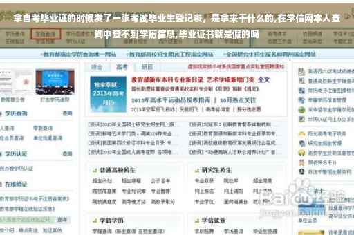 如果毕业证在中国高等教育学生信息网上查不到,一般是以下3种情况。1、2001年以前毕业生的学生毕业证(通过零散查询范围),或是1999年以前的毕业证(通过实名认证查询范围)。不在此范围内的证书都是查不到的。2、在有效范围内但是仍然查不到的。可能情况有:学校漏报数据或者学校上报的数据有误等,具体情况可以联系毕业院校学籍管理部门,由校方通过管理平台进行查询并找出网上查询不到的原因。3:不属于国家承认的学历或为假学历;遇到以上情况(除第三条外)请与毕业院校学籍学历管理部门的老师联系,咨询学历数据上报是否有问题。若有误,须校方重新上报数据,教育部门重新审批数据,才可更新网站信息,网站人员无权修改任何数据。或者与学历认证中心联系进行学历认证http://www.chsi.com.cn/xlcx/ 请登陆上述中国高等教育学生信息网就能查到你所要查询的信息了 注意事项: 1、证书编号是学校按照教育部制定的编码规则编制打印的,而不是证书印刷的流水号。 学历查询系统中的“证书编号”,指的是您的学历电子注册号码。 不同的高校对于该号码的称谓不同,有的叫做“学校编号”,有的叫做“电子注册号”等等。 2、学历数据包括研究生、普通本专科、成人本专科、网络教育、高等教育自学考试以及高等教育学历文凭考试等所有国家承认的全国高等教育学历证书信息。