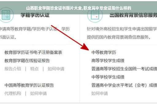 职业高中毕业证:职业高中重点培养中级技术人员和管理人员、中级技术工人和从业人员,职业高中分各种专业,而普通高中不分专业。职业高中对学生的要求是:具有能直接从事某一职业的技术理论知识、专业知识和操作技能;对于文化基础课,要具有相当于普通高中的水平。国家承认高中学历的毕业证有三类: