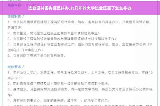 如下:年代久远了到你曾经毕业的学校去开个证明即可,因为成绩和学位等都有存档的。每个学校要求不一样,回学校教务处咨询一下。回学校申请补发一个。高校毕业证一旦遗失,虽毕业生可以向毕业的高校申请和毕业证具有同等效力的毕业证明书,但却并不能补办毕业证书,教育部门对此曾有明文规定。