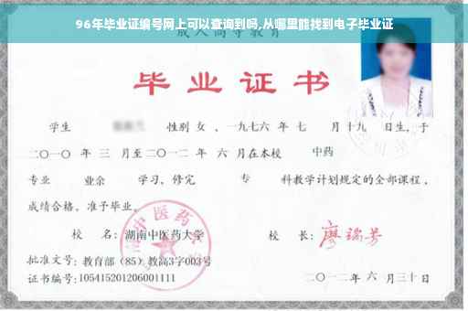 毕业证编号也叫电子注册号,一般来说,只要在网上能通过姓名、毕业证编号查到毕业证信息,就能证明存在其学历。不同的高校对于该毕业证书编号的称谓不同,有的叫做学校编号、学历证书编号、学历证编号、毕业证书号码、毕业证号码等等,只要是2001年以后毕业的,都可以在毕业证书上找到一个17位或者18位的数字,这个数字就是证书编号。证书编号是学校按照教育部制定的编码规则编制打印的,而不是证书印刷的流水号。到此,以上就是小编对于从哪里能找到电子毕业证的问题就介绍到这了,希望介绍关于从哪里能找到电子毕业证的5点解答对大家有用。
