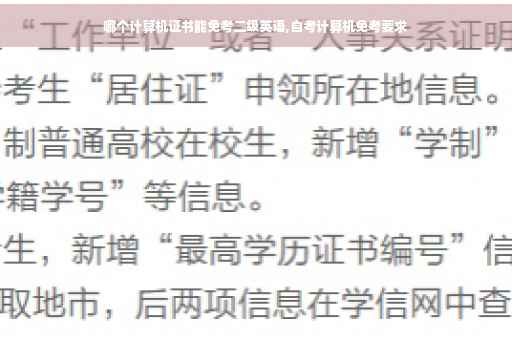 1)凡获得NCRE(全国计算机等级证书考试,下同)一级(及以上)合格证书者,可以免考高等教育自学考试中的《计算机应用基础》(0018)或《计算机应用技术》(2316)课程(包括理论考试和上机考试两部分);凡获得NCRE二级(及以上)证书者,可以免考高等教育自学考试中的“管理系统中计算机应用”课程(包括理论考试合上机考核两部分)。