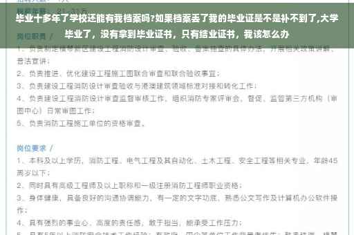 正常情况下,学校只给保管两年的,两年后没有迁走就会返回生源地的;如果真是十年前的话,按照最近几年的变革,你的档案有可能在你们的省人才交流;毕业证的话应该会保留的,你可能要去你们的学校咨询一下了。如果真是要去学校的话,也顺便去下档案科问下档案的确定走向。