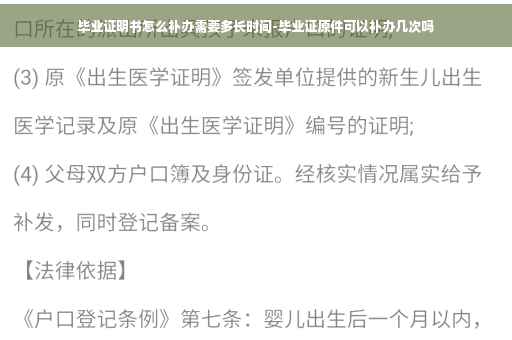 一个月左右。补毕业证一般需要时间是30天左右。毕业证书丢失后,需要本人要在国内的报纸上刊登遗失声明。然后补办申请书,最后携带遗失声明的报纸原件和本人有效证件到学校教务处办理补办手续。补办时间一般是30天。