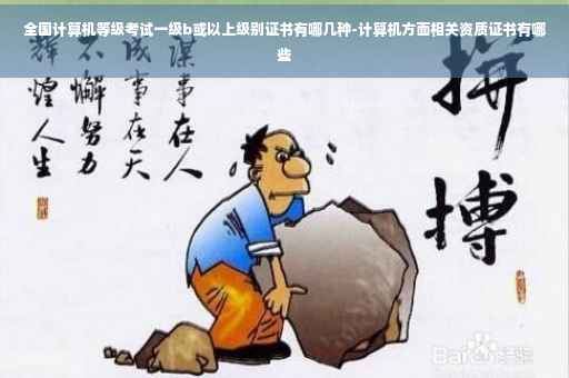 全国计算机等级考试一级b或以上级别证书有二级vb、二级c语言、二级C++、二级Java、二级WEB程序设计、二级VFP、三级PC技术、三级信息管理技术、三级数据库技术、三级网络技术等。 全国计算机等级考试(NationalComputerRankExamination,以下简称NCRE),是经原国家教育委员会(现教育部)批准,由教育部考试中心主办,面向社会,用于考查非计算机专业应试人员计算机应用知识与技能的全国性计算机水平考试体系。