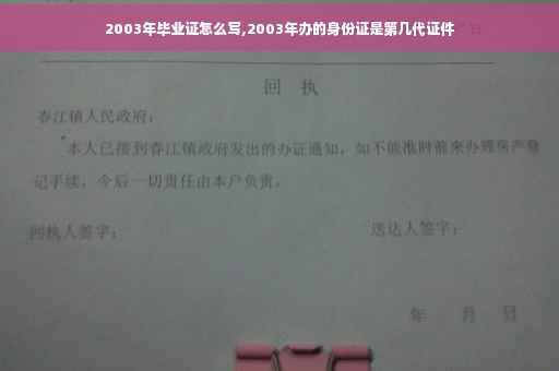 不存在2003年毕业证怎么写的问题,这是因为,不论是小学,中学毕业证,还是中专,大学毕业证,都是由教育部门统一设计,有统一格式和必填内容的印刷体正式文夲,由毕业生所在学校填写并发给毕业学生持有,以资证明