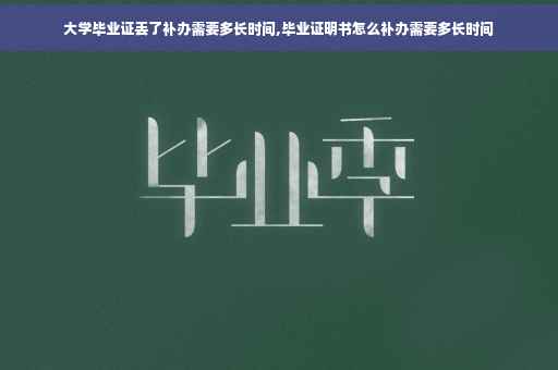 大学毕业证丢失后,补办需要的时间因学校而异。一般来说,需要7到10天的时间。但是如果准备资料齐全且学校规定得当,当天就可以处理好。另外,毕业证补办一般需要15天。但是不同学校的情况不同,有些学校一年只补办一次。因此,建议尽早处理,做好心理准备。